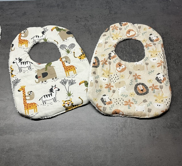 Bavoir artisanal en coton imprimé d’un côté et éponge absorbante de l’autre : parfait pour garder bébé au sec avec élégance. Un accessoire simple, efficace et charmant.