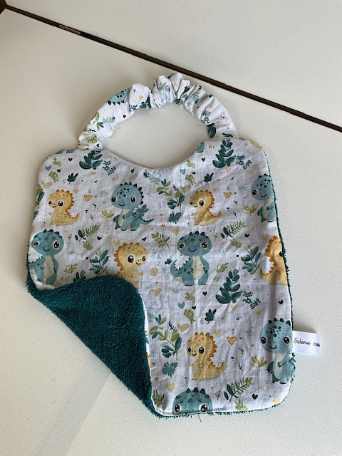 Entre bavoir et serviette de cantine idéal pour bébé à partir de 6 mois jusqu’à 2/3 ans . En tissu coton imprimé et éponge absorbant, pratique grâce à son attache élastique tour de son . Lavable en machine jusqu’à 60°.
