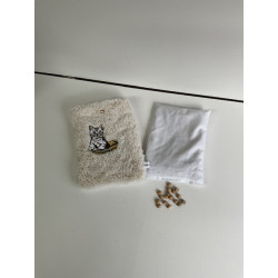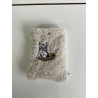 motif brodé à la brodeuse sur tissu doudou ou peluche . Lavable en machine sans problème.