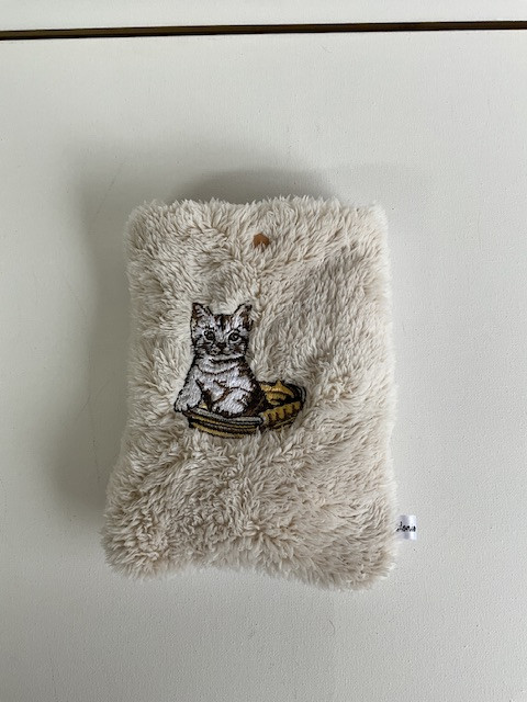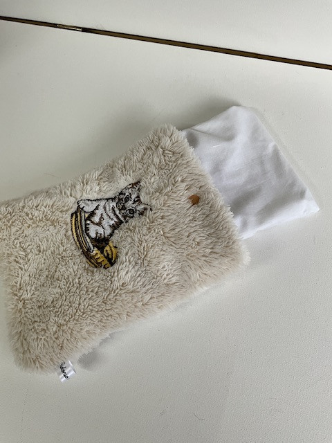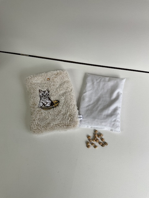 Bouillotte sèche , poche 100% coton contenant des noyaux de cerises .