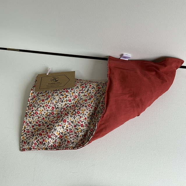 Bouillotte sèche , poche 100% coton contenant des noyaux de cerises .
