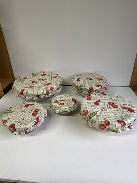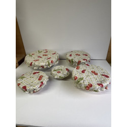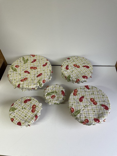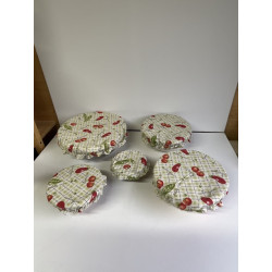 Lot de 5 charlottes alimentaires lavables et reutilisables couvre plats et saladiers . Remplace le film alimentaire !Ecologique et economique, un geste simple zero dechets .