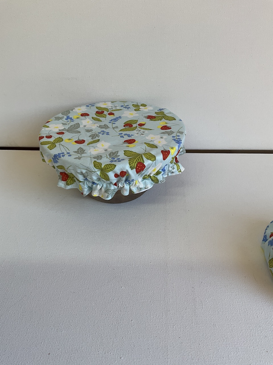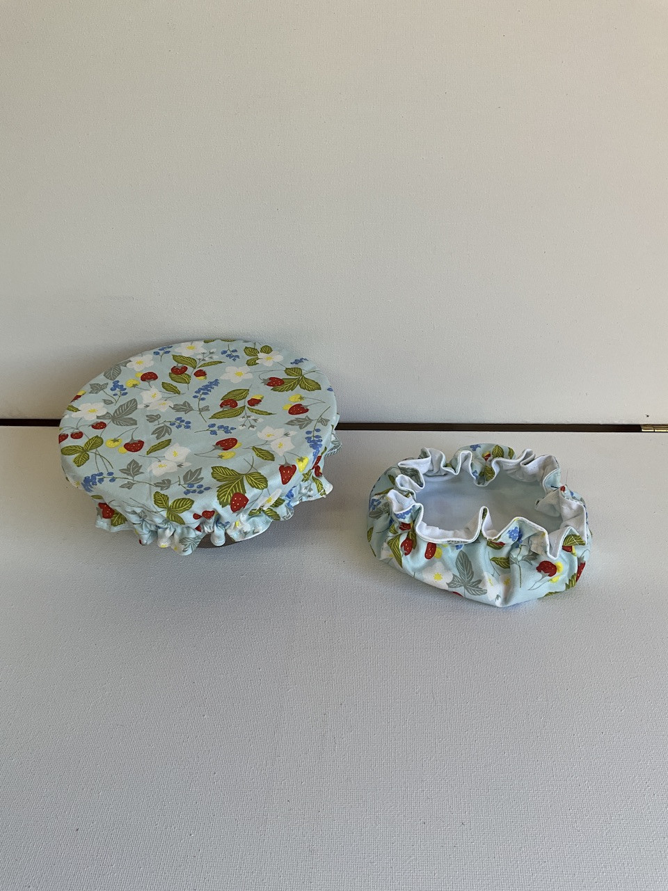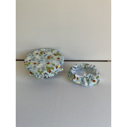 Lot de 2 charlottes alimentaires 100% coton , lavables et reutilisables couvre bols et petits saladiers . Remplace le film alimentaire .Ecologique et economique, un geste simple zero dechets .