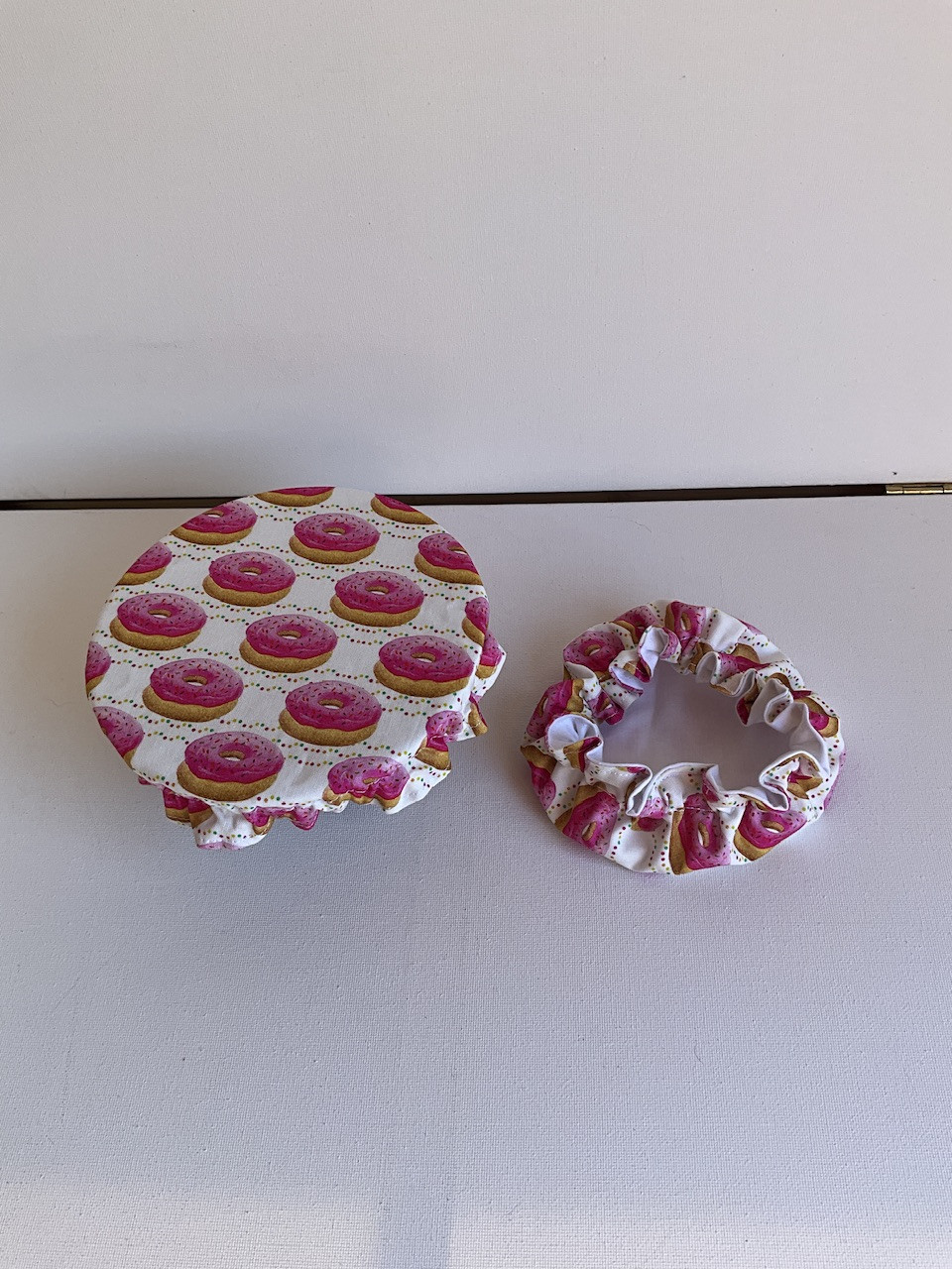 Lot de 2 charlottes alimentaires 100% coton , lavables et reutilisables couvre bols et petits saladiers . Remplace le film alimentaire .Ecologique et economique, un geste simple zero dechets .