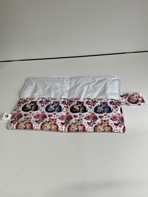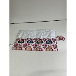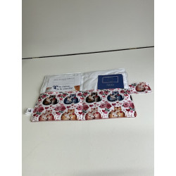 Protège carnet de santé pour animaux de compagnie afin de pouvoir ranger son carnet et ses papiers importants .mesure 24 x16 cm environ 2 poches à l intérieur de 16x 11 cm pour y glisser les papiers . Rembourré par de la ouate , se ferme par un bouton pression.