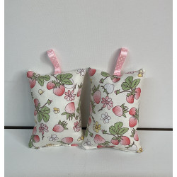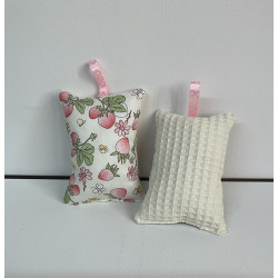 Éponges lavables en tissu imprimé et tissu nid abeille , rembourrées avec de la ouate pour une meilleure prise main . Lavable en machine à 40° .