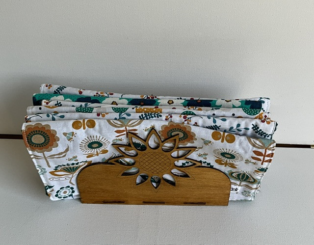 Une solution écologique et économique ! 6 feuilles ( 23x23cm) 1 face coton imprimée pour 1 deco sympa et une face coton nid d abeille absorbante . Les feuilles essuie tout sont lavables en machine à 40° et réutilisables dans le temps .elles sont vendues avec le support bois afin de les avoirs toujours à portée de main . .Un geste zéro déchet simple et efficace 😊