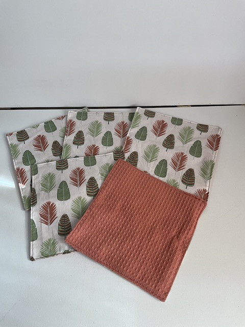 Une solution écologique et économique ! 5feuilles ( 23x23cm) 1 face coton imprimée pour 1 deco sympa et une face coton nid d abeille absorbante . Les feuilles essuie tout sont lavables en machine à 40° et réutilisables dans le temps .elles sont vendues avec le support bois afin de les avoirs toujours à portée de main . .Un geste zéro déchet simple et efficace 😊