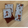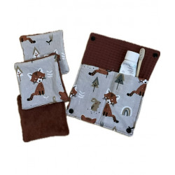 Étui à brosse à dents nomade . Pratique pour partir en voyage, chez papi/mamie..... en tissu imprimé et intérieur éponge nid d abeille il permet de protéger la brosse a dent . dim 20 x 7,5 cm environ ( ouvert 20x15 cm ) se glisse facilement dans une trousse de toilette. + 3 lingettes pour le visage assorti ( carré de 10x10 cm en tissu imprimé et éponge fibre de bambou ).Chaque produit étant créé artisanalement les dimensions peuvent varier de quelques millimètres il reste cependant des produits unique.
