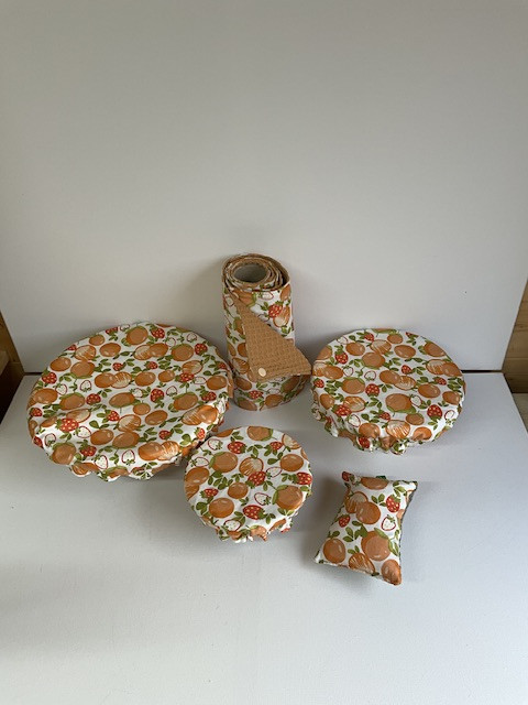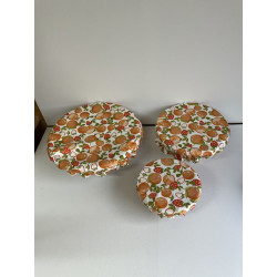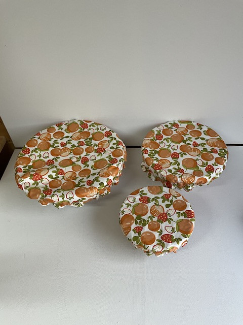 3 charlottes couvre plats : 18 cm pour les bols, 24 cm pour saladiers moyens et 32 cm pour les saladiers plus grands . S adaptent à différents diamètre de récipients ronds grâce à leur élasticité. 100% coton et lavable en machine jusqu’à 60°, une bonne alternative au film étirable plastique .