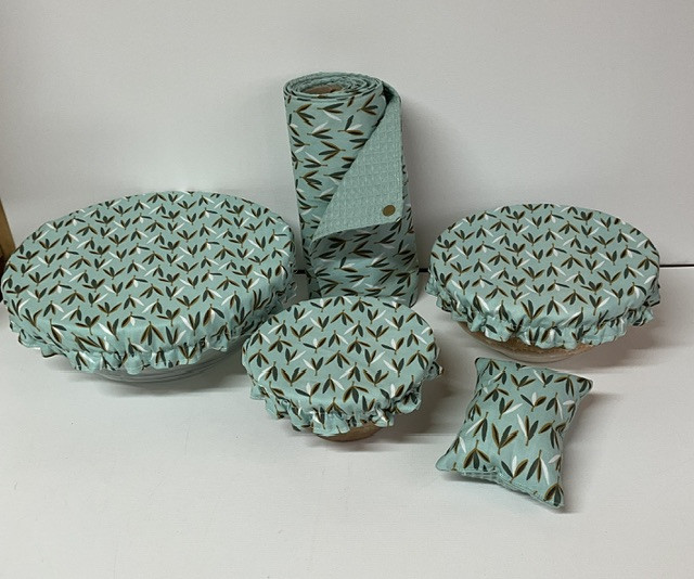 Ensemble de cuisine transition écologique : essuie tout lavable, éponge réutilisable et charlotte couvre plat pour saladier