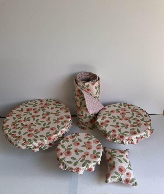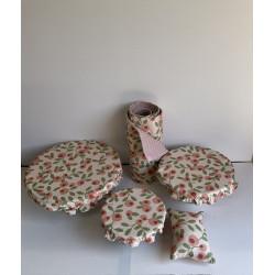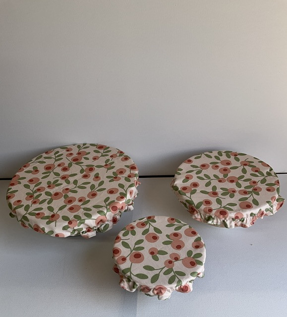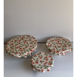 3 charlottes couvre plats : 18 cm pour les bols, 24 cm pour saladiers moyens et 32 cm pour les saladiers plus grands . S adaptent à différents diamètre de récipients ronds grâce à leur élasticité. 100% coton et lavable en machine jusqu’à 60°, une bonne alternative au film étirable plastique .