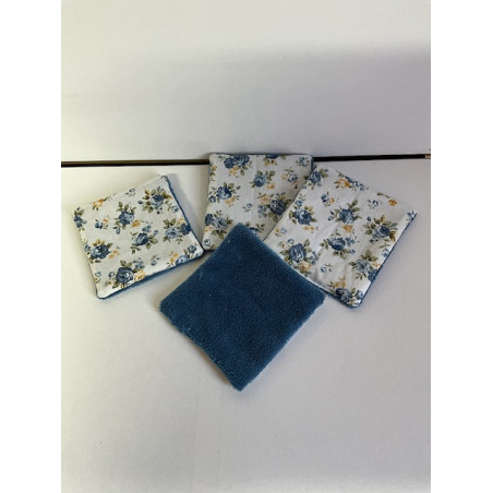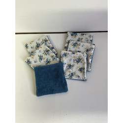 Carrés de 10x10 cm environ en tissu coton imprimé et éponge bambou . Pour un démaquillage tout en douceur . Lavables environ machine à 40°.