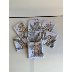 lingette environ 10x10 cm en coton imprime motif enfantin et éponge bambou .