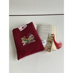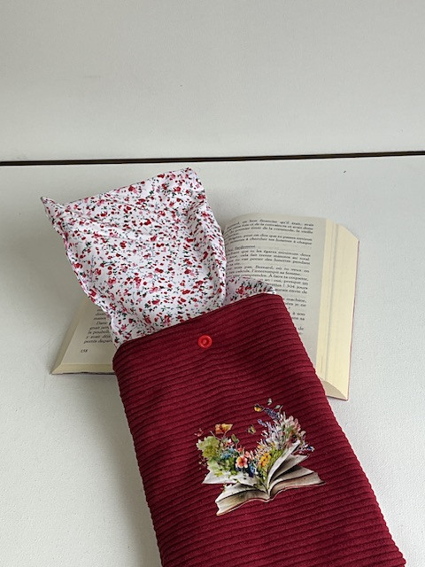 Pochette de protection pour livre de poche en tissu velours , tissu coton à l intérieur . Permet de transporter son livre partout avec soi sans l abîmer ou l écorner, se glisse facilement dans un sac .