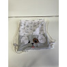 Idéal pour emporter doudou et chaussons à l école , chez nounou, papi mamie…. Transporter ses petits trésors partout ce petit sac à dos deviendra vite un indispensable pour l enfant ! Ce petit sac est double avec un tissu coton blanc à l intérieur plus solide et lavable en machine . Ces petits pochons mesurent 28 cm de large sur 34 cm de haut environ . Ces sacs étant créés artisanalement les dimensions peuvent varier de quelques millimètres. Ce sont des produits uniques .