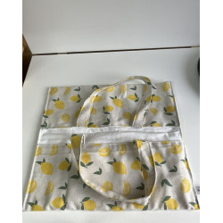 Sac à tarte fait main en tissu lin imprimé et coton à l intérieur .