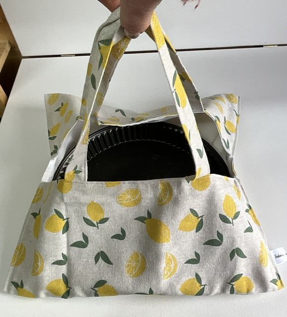 Sac à tarte ideal pour transporter tartes et gâteaux zero dechet .dim du sac :environ 38x37 cm , anses 48 cm . Les produits étant créés artisanalement les mesures peuvent varier de quelques millimètres.ils restent des produits uniques .