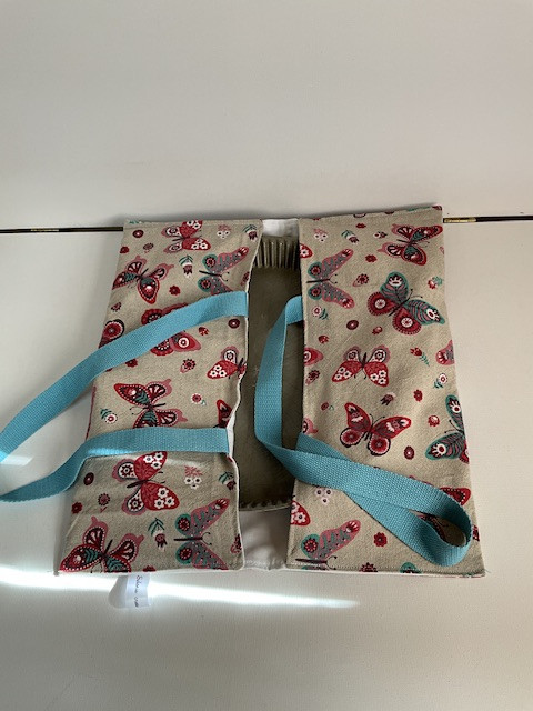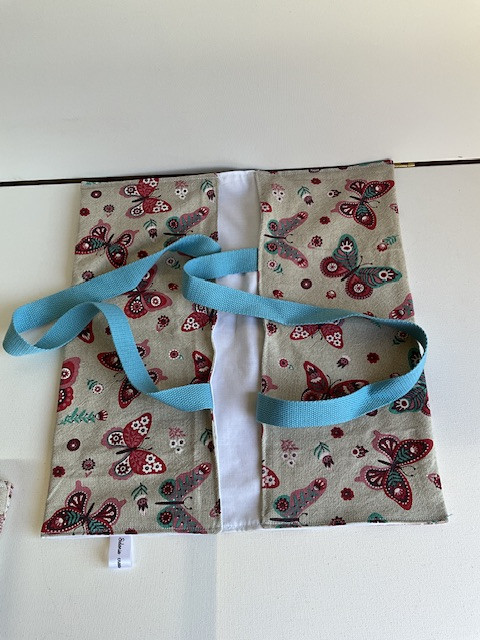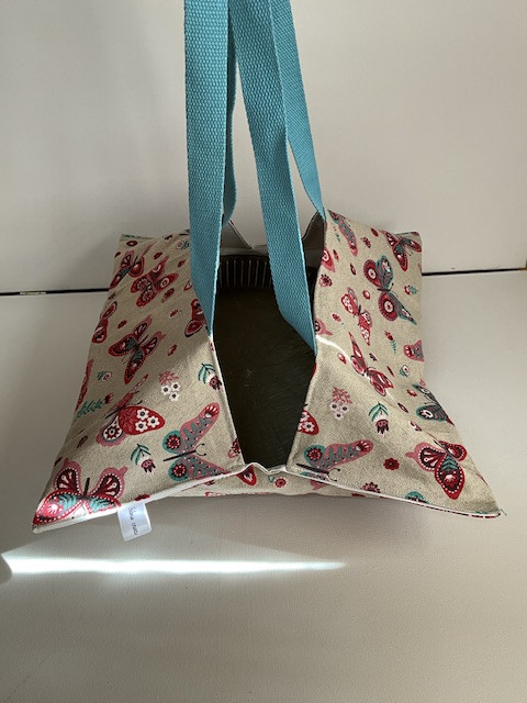 Sac à tarte fait main en tissu lin imprimé et coton à l intérieur .