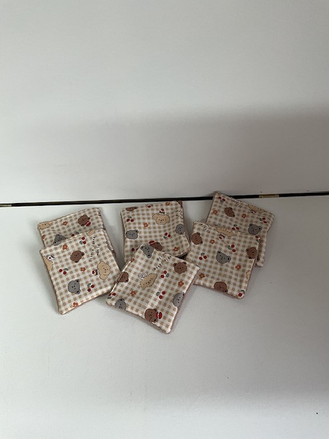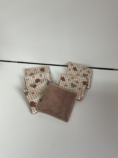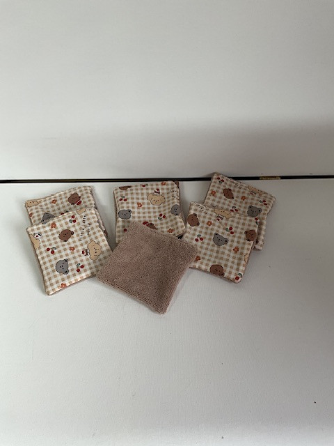 Lingettes/debarbouillettes ( 1 côté tissu coton imprimé / 1 côté éponge bambou ) de 10x10 cm pour bébé ou enfant . Lavables en machine jusqu’à 60°, ces petites lingettes durent dans le temps et deviendront vite indispensables ! Économiques et écologiques c est une belle alternative au zéro déchet et un petit geste pour la planète 😉