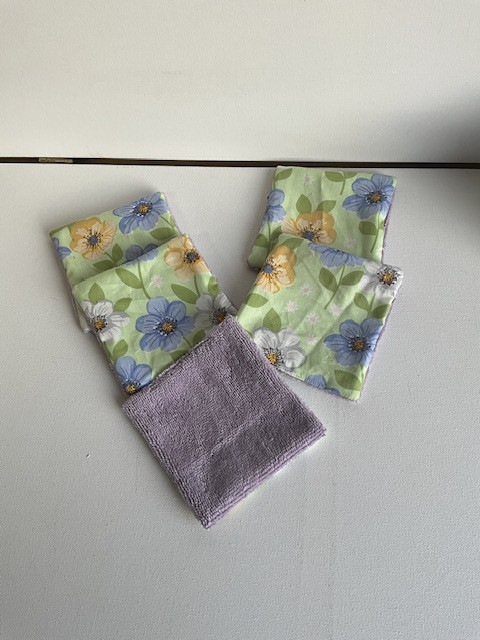 5 lingettes démaquillantes en tissu imprimé / éponge bambou .